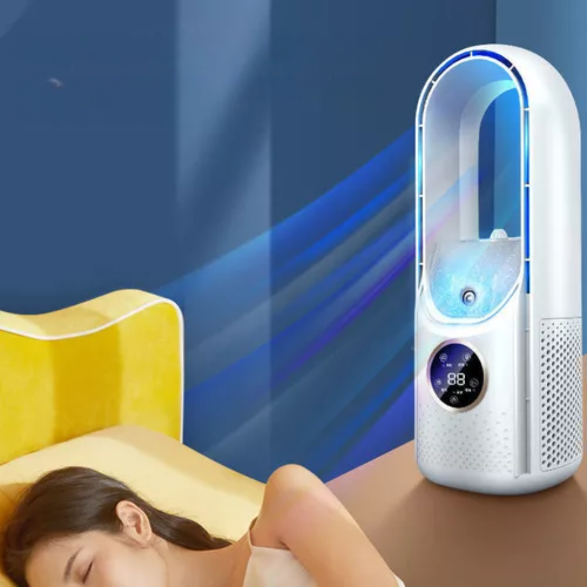 - Función 2 en 1: Proporciona un aire de refrigeración fuerte + humidificación por rociado, lo que crea un ambiente cómodo y saludable para ti.